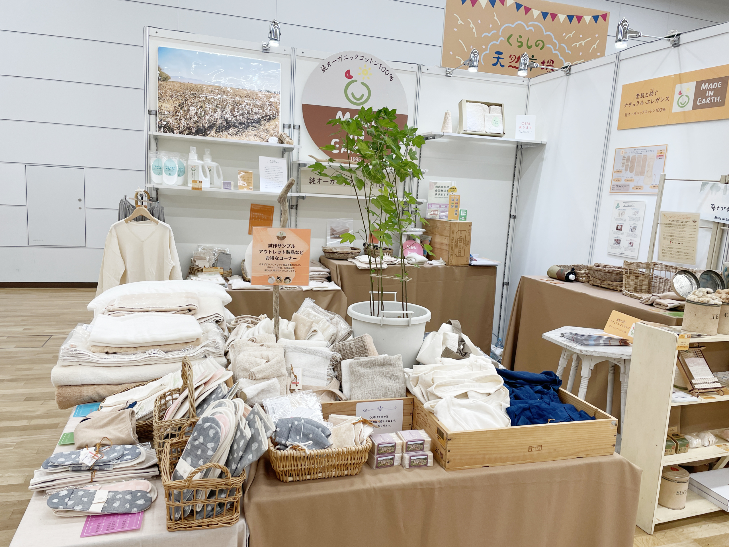 純オーガニックコットンアイテムを店内で販売しています。